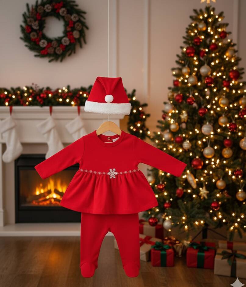 / Червен коледен комплект с рокличка и ританка
